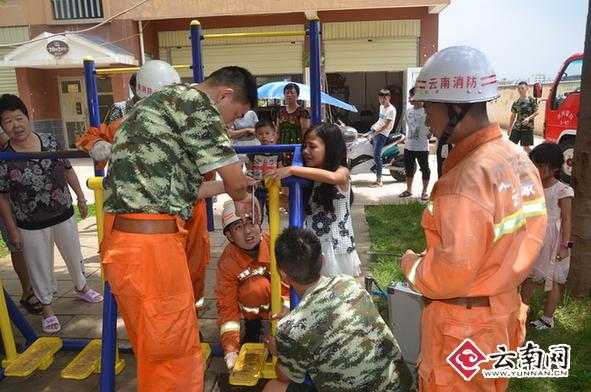云南網(wǎng)訊(記者 趙崗 通訊員 許建旗)8月11日14時(shí)許,云南蒙自市一名8歲小女孩在玩耍戶外漫步機(jī)時(shí)左手手心被卡在漫步機(jī)活動(dòng)軸與固定架的狹縫中,當(dāng)?shù)叵拦俦褂脙砂崖萁z刀半小時(shí)成功助其脫困。