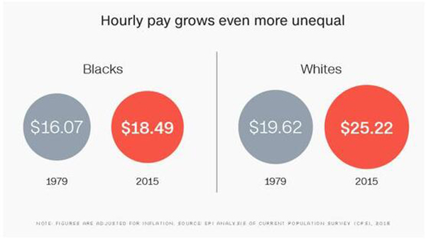 美國智庫經(jīng)濟(jì)政策研究所(Economic Policy Institute)的最新報告顯示,這個國家黑人與白人之間的收入差距已經(jīng)達(dá)到了近四十年來最嚴(yán)重的地步。