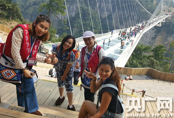 張家界東線旅游景區(qū)大峽谷玻璃橋吸引中外游客