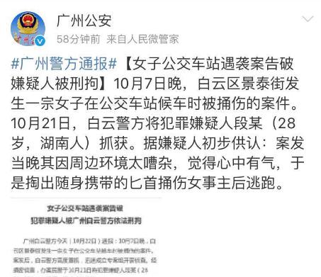 男子在公交站捅傷陌生女子 自稱因周邊太嘈心中有氣