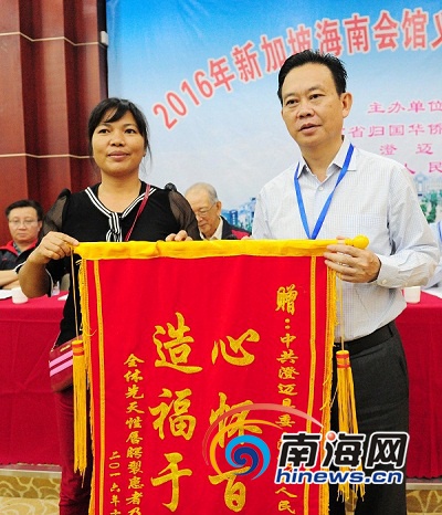 患者家屬向澄邁縣長(zhǎng)吉兆民送上錦旗。通訊員 王家專(zhuān)攝