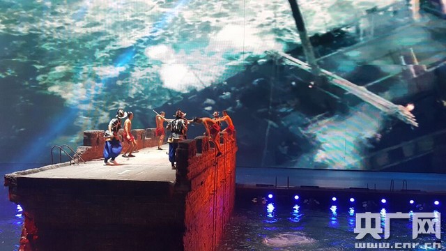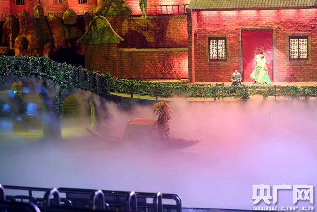 在神游華夏大劇院內(nèi),《閩南傳奇》正在上演,整場演藝共分六幕:天造鷺島、島城大戰(zhàn)、南洋歷險、漁村人家、龍的傳人、福佑華夏,以閩南文化為主線,融入當(dāng)?shù)靥厣,把民俗、民族風(fēng)、民族音樂和人文歷史,用高科技的展示手法與國際最新的旅游演藝劇目結(jié)合起來。