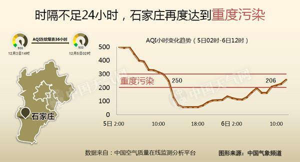 昨天,隨著冷空氣擴(kuò)散南下,北方部分地區(qū)霾天氣反彈,以省會(huì)城市石家莊為例,時(shí)隔不足24小時(shí),空氣質(zhì)量再度達(dá)到重度污染。