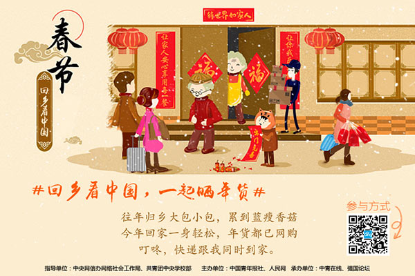 中青在線訊(中國(guó)青年報(bào)·中青在線記者 李博晶)春節(jié)回鄉(xiāng),您今年是否有更多的獲得感、幸福感?在雞年新春到來(lái)之際,在一年一度人口大遷徙之際,在國(guó)家網(wǎng)信辦網(wǎng)絡(luò)社會(huì)工作局、共青團(tuán)中央學(xué)校部指導(dǎo)下,中國(guó)青年報(bào)社、人民網(wǎng)共同發(fā)起“中國(guó)好網(wǎng)民·回鄉(xiāng)看中國(guó)”2017尋找百名青年觀察員行動(dòng)。