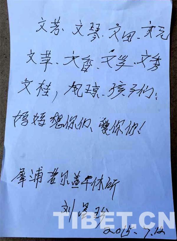 △劉昌珍給10個(gè)漢藏兒女們寫(xiě)的字條