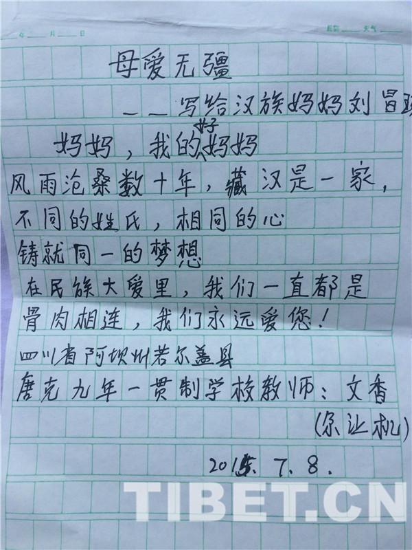 △文香(尕讓機(jī))給漢族媽媽劉昌珍寫(xiě)的信。