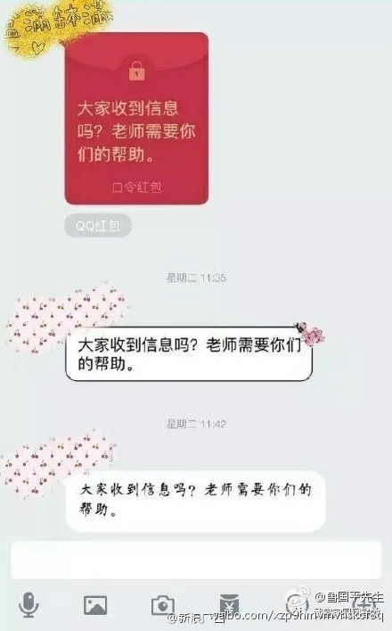網(wǎng)帖中還上傳了數(shù)張疑似該老師與學(xué)生的QQ聊天截圖,其中的一張截圖中的對話道出了老師“眾籌”買車的原因:“新的一年又開始了,萬事待發(fā),你們更是前程似錦。老師心里有個(gè)念頭已經(jīng)很久了,小孩也快四歲了,每次回家都路途遙遠(yuǎn),要轉(zhuǎn)幾次車,你們師母和小孩更是暈車嚴(yán)重,有時(shí)一路吐回家,看看他們?nèi)绱送纯,真是愧為男人啊!所以,擁有一輛車是多么的迫切。你們也知道老師那些工資維持生活都很艱難,更不敢有什么想法,也不好向父母親人求助,都三十多歲了,真的羞于啟齒!所以,雖然也很不好意思,但是也只能跟你們說說我的想法了:大家如果有能力的,可不可以慷慨解囊一兩百塊,等你們哪天結(jié)婚了,再給你們打紅包怎么樣?但愿你們能幫幫你們的老師吧。”