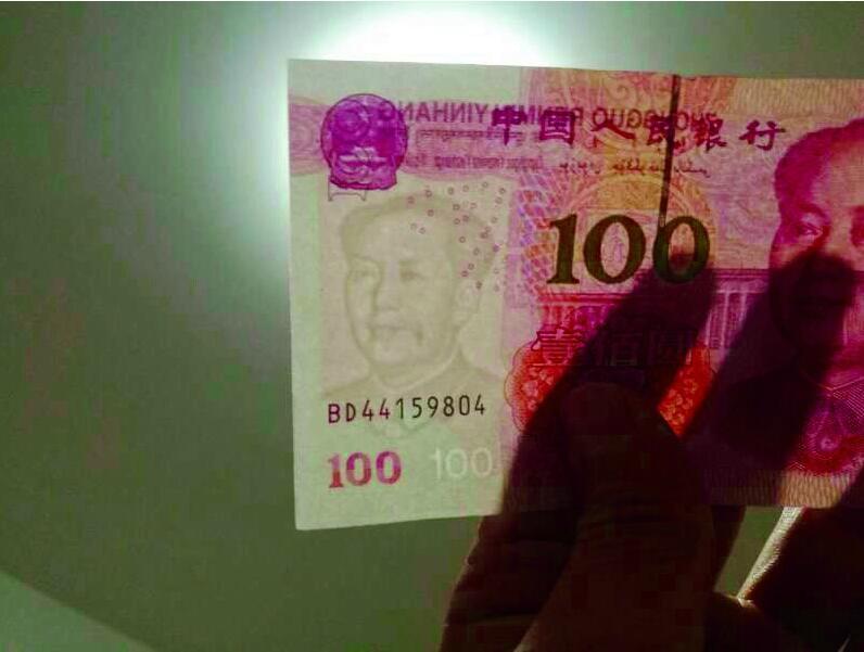 “以前曾在報紙和電視上看過有人在銀行取到錯版人民幣的新聞,沒想到,這樣的巧合會輪到自己身上!苯,家住武昌水岸星城的劉先生無意間發(fā)現(xiàn),自己在銀行取的一張編號為BD44159804的新版百元鈔票上,毛主席水印嘴角左側(cè)多了顆又長又大的“痣”。