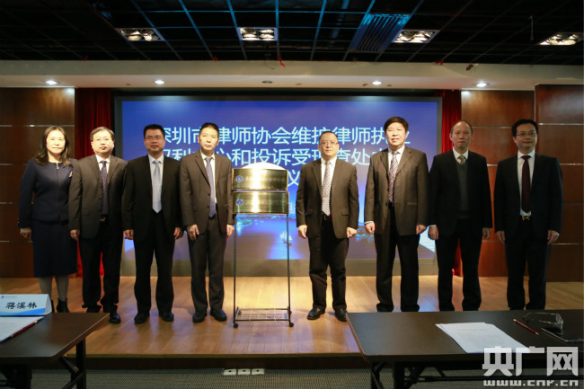 央廣網(wǎng)深圳3月3日消息(記者黃倩、于鑫淼)今天上午,深圳律協(xié)掛牌成立“維護律師執(zhí)業(yè)權(quán)利中心”和“投訴受理查處中心”。深圳市司法局局長蔣溪林、深圳市律師協(xié)會會長高樹等為維權(quán)中心和投訴中心揭牌。
