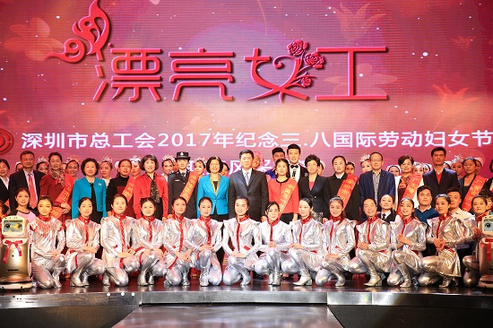在以“漂亮女工”為主題的女職工風(fēng)采展演環(huán)節(jié),來自深圳市基層女職工與專業(yè)演員一起,帶來了自主編排、創(chuàng)作的《漂亮女工》、《我們是自豪的建設(shè)者》等節(jié)目,用舞蹈、演唱、講述、詩朗誦等形式展現(xiàn)了深圳女職工的風(fēng)采。展演形式新穎、藝術(shù)表現(xiàn)力強(qiáng),博得了現(xiàn)場(chǎng)觀眾的陣陣掌聲。女職工工作是工會(huì)工作的重要組成部分,近年來,深圳市總工會(huì)積極實(shí)施女職工提升素質(zhì)建功立業(yè)工程、拓寬女職工維權(quán)途徑、開展女職工“關(guān)愛行動(dòng)”等。五年來,深圳市總工會(huì)先后投入205萬元為女職工送上“女職工安康互助保障計(jì)劃”,向深圳市企事業(yè)單位送出超過1000場(chǎng)“女職工素質(zhì)講座”,為4502名一線女職工開展免費(fèi)“兩癌”檢查活動(dòng),并為2660名困難女職工送上慰問金共計(jì)832萬元。2017年,市總工會(huì)女職工工作將繼續(xù)圍繞市總工會(huì)改革創(chuàng)新思路和項(xiàng)目,進(jìn)一步深化女職工提升素質(zhì)建功立業(yè)工程和女職工“關(guān)愛行動(dòng)”,加大組建、維權(quán)和評(píng)選表彰力度,努力提升女職工服務(wù)能力,為廣大女職工的生產(chǎn)生活、成才成長(zhǎng)創(chuàng)造更好條件,真正成為深圳“女職工之家”。