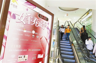 3月本是消費淡季,但3月女人節(jié)營銷活動,給商場帶來不錯的人氣和銷售。上周末,京城各大商場化妝品、內(nèi)衣、女裝、珠寶等商品都呈熱賣趨勢。在折扣力度上,消費滿指定金額再減38元、購物3.8倍積分、全場第二件3.8折、部分品牌化妝品節(jié)日期間低至五折……試圖激發(fā)消費者的購物欲。