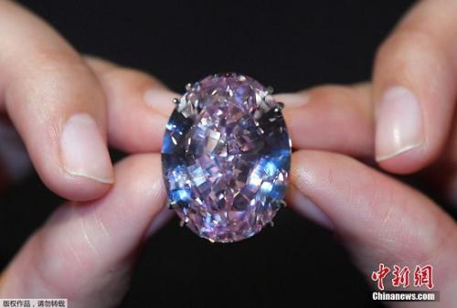 “粉紅之星”(Pink Star)粉鉆當?shù)貢r間13日在瑞士日內(nèi)瓦拍賣,這枚罕見的寶石最終以8300萬美元成交,寫下史上寶石拍賣新高!薄 “嗄翁乇硎荆@顆59.6克拉的無瑕粉鉆在美國寶石學院(GIA)所評估的同等級鉆石中體積稱霸,第2大的同類鉆石不及它的一半。