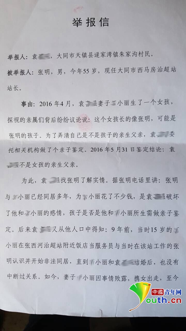 中國青年網(wǎng)記者聯(lián)系到該貼的舉報人袁某某,袁某某稱自己與前妻小麗于2015年5月份結(jié)婚。2016年4月,小麗生了一個女孩,探視的親屬紛紛議論稱女孩長得不像袁某某而像張明。后,袁某某委托相關(guān)機構(gòu)進行親子鑒定,結(jié)果顯示袁某某非女孩親生父親。