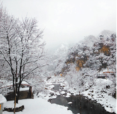 從灃峪口進山后,到凈業(yè)寺附近,即已漫天飄雪,但山上積雪并不多。