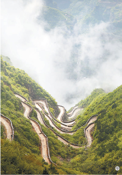 圖④:太行大峽谷里的盤山路被綠意環(huán)繞。