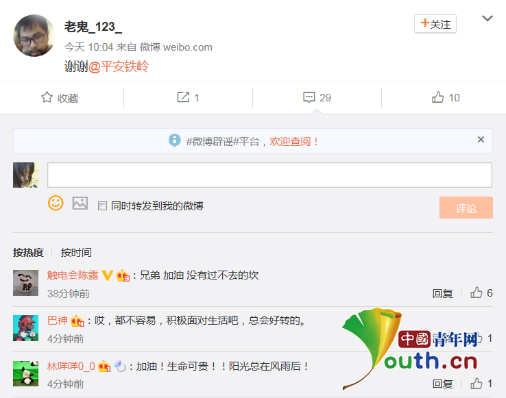 當(dāng)事人劉某31日10:04發(fā)布微博謝謝@平安鐵嶺。