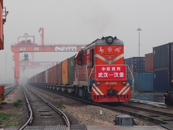 16日9時,編組50輛、滿載武漢及長三角、珠三角企業(yè)生產的電子元器件、飲料、食品、機電產品的X8017/8次中歐班列(武漢—德國漢堡)從武漢鐵路局吳家山中心站安全開出。這是今年以來從武漢開行的第36趟中歐班列。