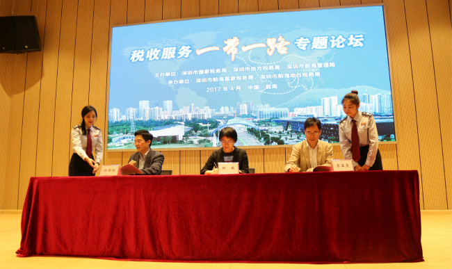 央廣網(wǎng)深圳4月22日消息(記者黃倩)21日下午,深圳稅收服務(wù)“一帶一路”專題論壇在中國(guó)自由貿(mào)易實(shí)驗(yàn)區(qū)(廣東)前海蛇口片區(qū)舉行。深圳市國(guó)稅局、地稅局、前海管理局三方共同簽署合作備忘錄,旨在形成合力,助力深圳企業(yè)發(fā)展。