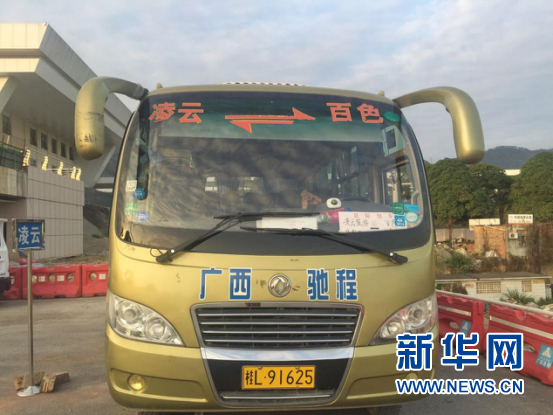 晚上6點(diǎn)50分,一輛開往凌云縣的大巴車停在百色站站前廣場,司機(jī)王師傅正在等待今天最后一班“擺渡”客人。