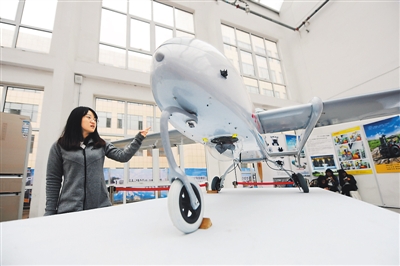 5月23日,在青島工業(yè)設(shè)計周推介會上,山東鷹翼航空科技有限公司展示“鷹眼”長航時固定翼無人機。王海濱攝(人民視覺)