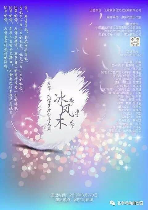 央廣網(wǎng)北京6月2日消息(張瑜瑜)6月7日至8日,由北京舞蹈學(xué)院大學(xué)生原創(chuàng)的音樂劇《冰季.風(fēng)季.木季》將在劇空間劇場(chǎng)上演。這是由北舞追夢(mèng)戲劇團(tuán)隊(duì)傾力打造的第一部原創(chuàng)作品,由北京新潤(rùn)恒文化發(fā)展有限公司出品。
