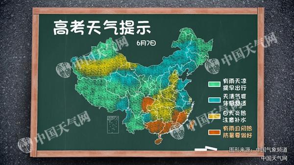今天是2017年高考的第一天,全國雨水整體較弱,以小到中雨為主,早晨吉林、黑龍江以及華南等地可能出現(xiàn)降雨,建議考生稍微早點(diǎn)出門。今天白天陜西、江南、華南等局地有中到大雨,還可能出現(xiàn)短時(shí)強(qiáng)降水、雷暴大風(fēng)等強(qiáng)對流天氣。中央氣象臺(tái)預(yù)計(jì),新疆北部、陜西中部、云南東南部、江南東南部、華南中東部、海南島等地有中到大雨,局地有暴雨。