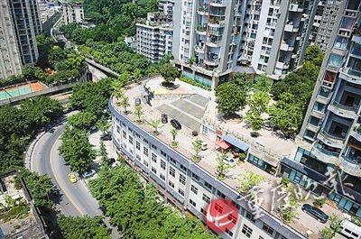 記者探訪:這條路實(shí)為南岸區(qū)南濱路聚豐江山里小區(qū)道路,位于該小區(qū)3棟附近。重慶晚報(bào)記者看到,屋頂公路寬約10米,與樓下往彈子石方向的主干道海棠溪新街呼應(yīng),靠樓的一側(cè)是小區(qū)車庫出入口,遠(yuǎn)觀有種樓上樓下皆有路的感覺。小區(qū)一位保安表示,這條路的下面是小區(qū)的車庫,車庫下是商鋪。