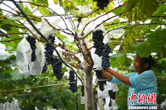 6月24日,重慶西彭鎮(zhèn)真武宮村栽種的大片葡萄已進(jìn)入成熟季,當(dāng)?shù)氐孽r果自采銷售模式吸引不少主城區(qū)的市民前來觀光旅游并入園采摘。當(dāng)日,第四屆西彭葡萄采摘季正式啟動(dòng)迎客。據(jù)悉,西彭鎮(zhèn)真武宮村是以鮮果采摘為載體的休閑農(nóng)業(yè)體驗(yàn),全村共有26家農(nóng)業(yè)企業(yè),目前種植精品葡萄規(guī)模達(dá)1800余畝,年產(chǎn)值3500萬(wàn)元,優(yōu)質(zhì)苗木種植規(guī)模500余畝,精品草莓200畝,水產(chǎn)養(yǎng)殖300畝。2016年村集體收入達(dá)110萬(wàn)元,農(nóng)民年人均收入2萬(wàn)元。