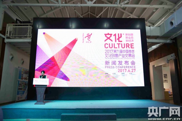 央廣網(wǎng)北京6月28日消息(記者雅萍)6月27日,“2017第九屆中國南京文化創(chuàng)意產(chǎn)業(yè)交易會”首次新聞發(fā)布會在南京國創(chuàng)園舉辦。江蘇省委宣傳部、江蘇省科技廳等主辦單位處室負責人,南京市委宣傳部、南京市文廣新局、南京市科委、南京市旅游委等承辦單位分管領(lǐng)導(dǎo),以及蘇寧環(huán)球、上海游族、玲瓏天文化、大塘金文化等科技文化企業(yè)代表、各類服務(wù)提供商代表等共計100余人出席了發(fā)布會。中共南京市委宣傳部副部長潘谷平,介紹了南京文交會轉(zhuǎn)型發(fā)展的探索之路,以及本屆展會的主題定位、特色內(nèi)容。
