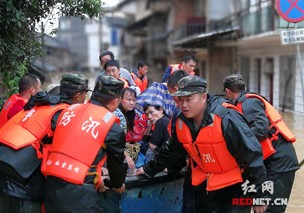 1日下午15時(shí)30分,長(zhǎng)春垸新橋河鎮(zhèn)烈公橋段河堤又密集出現(xiàn)十二處小管涌,救災(zāi)官兵來不及洗去臉上的泥土,又投入到緊張的救援工作中,兩個(gè)小時(shí)候,十余處險(xiǎn)情全部被排除。6月30日下午18時(shí),暴雨侵襲下的湘西沅江水位持續(xù)上漲,瀘溪縣境內(nèi)浦市至武溪段全面超警。武警湘西支隊(duì)115名官兵連夜奮戰(zhàn)在一線,全力抗擊洪峰。在武溪鎮(zhèn)五里洲村,截至目前,該支隊(duì)共疏散、轉(zhuǎn)移群眾1000余人,排查化解各類安全隱患6起,裝填沙袋2000多袋,打好木樁500余個(gè),幫助轉(zhuǎn)移財(cái)產(chǎn)物資50余萬元。1日凌晨5時(shí),洪水漫灌懷化辰溪縣城,城區(qū)到處一片汪洋,全域進(jìn)入防汛1級(jí)應(yīng)急響應(yīng)。懷化支隊(duì)50余名救援官兵迅速馳援,利用自帶皮劃艇和征用民用木船等手段,深入老城區(qū)中心轉(zhuǎn)移受困群眾800余人。救援中,一名高燒兩天多的4歲女孩被困3樓家中,該支隊(duì)參謀長(zhǎng)王良華帶一艘皮劃艇避開縱橫交錯(cuò)的架空電線,成功將其轉(zhuǎn)移至附近醫(yī)院。