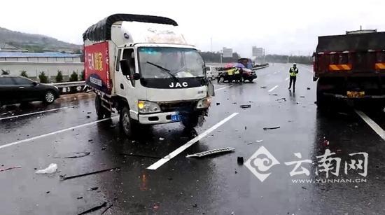 云南網(wǎng)訊(記者 熊強(qiáng))近日,云南部分州市迎持續(xù)降雨天氣,雨天行車需注意安全。7月2日上午10點(diǎn)左右,昆曲高速軍馬場(chǎng)路段發(fā)生6車相撞事故,造成3人輕傷。隨后,昆曲大隊(duì)對(duì)該路段采取臨時(shí)交通管制,中午12點(diǎn)左右,事故處理完畢,交通得以恢復(fù)。