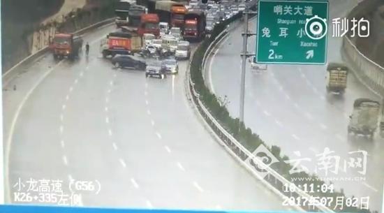 截至中午12點(diǎn)左右,多車相撞事故處理完畢,k2213(關(guān)箐)坡頂臨時(shí)交通管制得以解除,交通恢復(fù)。