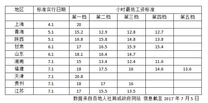 人民網(wǎng)北京7月5日電 近日,貴州省、江蘇省陸續(xù)宣布調(diào)整全省最低工資標準,據(jù)人民網(wǎng)不完全統(tǒng)計,截至7月,包括蘇黔今年至少已有上海、青海、陜西、甘肅、山東、湖南、福建、天津等10個地區(qū)上調(diào)了最低工資標準。