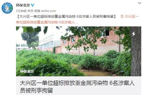 中新網(wǎng)7月7日電 據(jù)北京市環(huán)境保護(hù)局微博消息,北京大興區(qū)一單位超標(biāo)排放重金屬污染物,6名涉案人員被刑事拘留。
