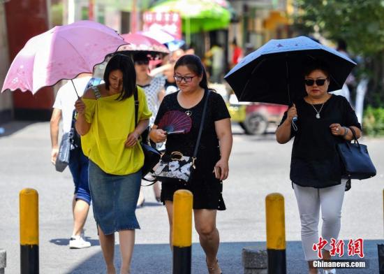 7月6日,新疆烏魯木齊市最高溫度達到36攝氏度,外出民眾打著傘、搖著扇子也難以抵御炎熱的天氣。 中新社記者 劉新 攝