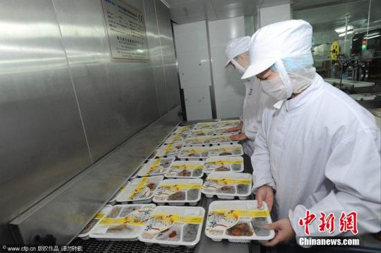 探訪高鐵盒飯生產(chǎn)車(chē)間 消毒嚴(yán)格全副武裝。青木 攝 圖片來(lái)源:CFP視覺(jué)中國(guó)