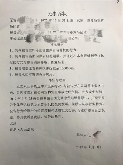 今年3月份青島市黃島區(qū)人民法院受理了一起案件,起因是孫某與張某在工作中因一批貨物受損而產(chǎn)生矛盾,隨后張某就在自己的微信朋友圈發(fā)布消息辱罵孫某,并附上了孫某的個人信息。事情發(fā)生后,孫某認為張某侵犯了自己的合法權(quán)益。隨后,孫某將張某告上法庭,要求其停止侵權(quán),當面向自己賠禮道歉,恢復名譽,并做出賠償。