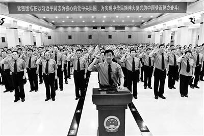 最高檢檢察長(zhǎng)曹建明率領(lǐng)228名首批入額檢察官舉行憲法宣誓活動(dòng) 供圖/最高檢