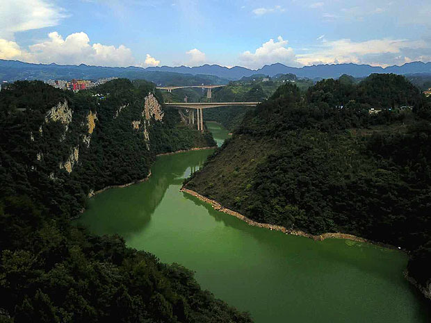 飛躍鹽津河峽谷俯瞰氣勢恢弘的國酒門
