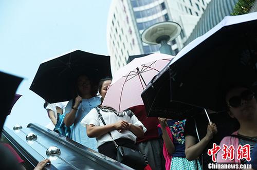 7月21日,上海街頭的行人以各種辦法遮擋炙熱的陽光。當(dāng)日12時(shí)22分,上海中心氣象臺發(fā)布今夏首個高溫紅色預(yù)警,中心城區(qū)最高氣溫將達(dá)40℃。 中新社記者 湯彥俊 攝