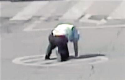 從視頻看,7月23日,南陽市某路口,20歲輔警王宏釗在執(zhí)勤。高溫下,他的身體出現(xiàn)不適,一開始半蹲下來,低著頭,后來又堅(jiān)持站起。最后還是體力不支,跪地伏倒在路中央安全島的白圈內(nèi)。