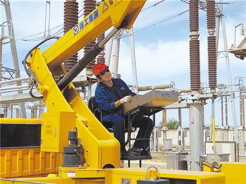 進入7月,甘肅電網(wǎng)進入迎峰度夏關鍵期,電力員工冒酷暑、戰(zhàn)高溫,全力確保電網(wǎng)安全穩(wěn)定運行。圖為國網(wǎng)甘肅檢修公司高空作業(yè)車司機正在運送高空作業(yè)人員到達工作位置,對設備開展檢查。本報記者 李琛奇 通訊員 王曉莉攝影報道