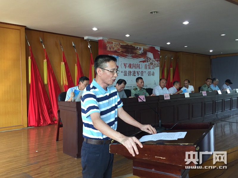 央廣網(wǎng)廈門7月27日消息(記者呂貝娜)為隆重紀(jì)念中國人民解放軍建軍90周年,7月27日下午,廈門市委文明辦、市雙擁辦、市司法局、市愛國擁軍促進(jìn)會(huì)、鷺江出版社、市文聯(lián)、市作協(xié)聯(lián)合在廈門駐軍31616部隊(duì)舉辦小說集《軍魂閃閃》首發(fā)式暨“法律進(jìn)軍營”活動(dòng)。