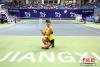 7月30日,奪得冠軍的中國(guó)金花彭帥站在寫有“JIANGXI”的字母前留影。當(dāng)天,2017江西網(wǎng)球公開賽決賽在南昌打響,中國(guó)女網(wǎng)名將彭帥以6比3、6比2橫掃日本選手日比野菜緒,奪得賽事冠軍,同時(shí)這也是她第二次在南昌登頂。 中新社記者 劉占昆 攝 -