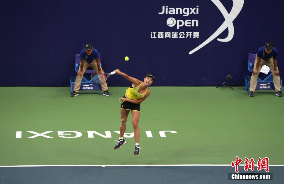 7月30日,中國(guó)女網(wǎng)名將彭帥在賽場(chǎng)上奮力拍球。當(dāng)天,2017江西網(wǎng)球公開賽決賽在南昌打響,中國(guó)女網(wǎng)名將彭帥以6比3、6比2橫掃日本選手日比野菜緒,奪得賽事冠軍,同時(shí)這也是她第二次在南昌登頂。 中新社記者 劉占昆 攝 -