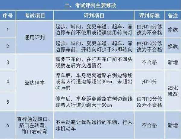 道路駕駛技能考試操作和評判主要修改一覽