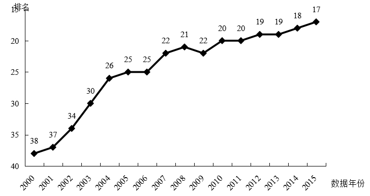 中國國家創(chuàng)新指數(shù)排名變化圖