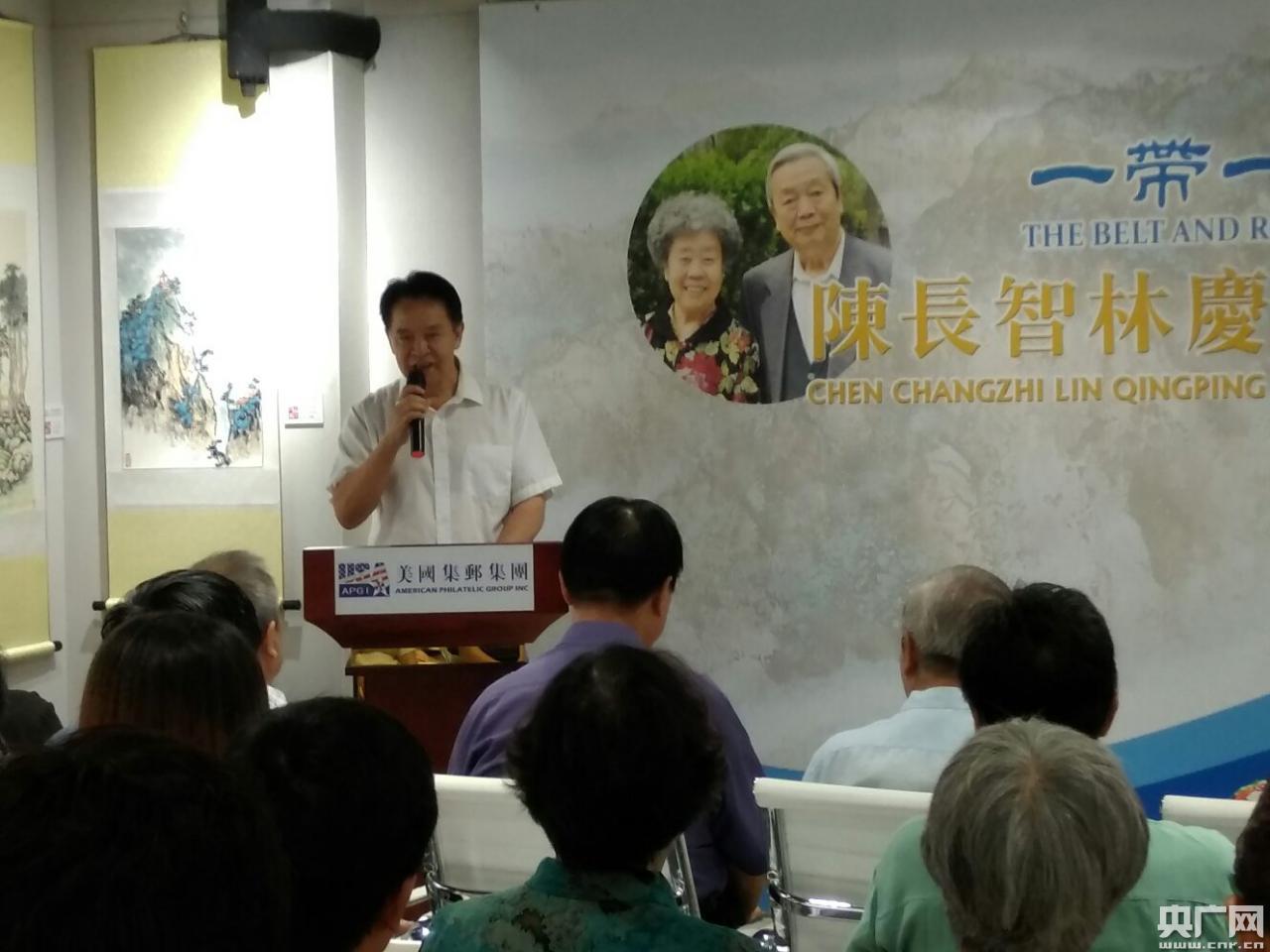 在開幕式上,聯(lián)合國世界非物質(zhì)文化遺產(chǎn)保護(hù)基金會與美國集郵集團(tuán)中國藝術(shù)基金會理事長崔恩卿先生代表主辦單位首先致辭,他說:發(fā)起主辦“一帶一路,水墨絲語”陳長智 林慶萍伉儷畫展,最重要的目的就是為了更好地宣揚(yáng)和傳播中國文化,我們要繼承與發(fā)揚(yáng)古絲綢之路文化交融、和平共贏的傳統(tǒng)精神,以文化藝術(shù)為媒介,增強(qiáng)“一帶一路”的吸引力與影響力,從而共同打造政治互信、經(jīng)濟(jì)融合、文化包容的利益共同體、責(zé)任共同體和命運(yùn)共同體,推動中國與世界各國的全方位、多領(lǐng)域的交流與合作。談及觀畫體會,他動情地表示,陳長智、林慶萍先生是中國當(dāng)代書畫藝術(shù)的杰出代表,每次看他們的山水畫,都有撲面而來的真實氣息和濃烈的人文情感,筆墨精妙,而又平淡實在,那岸邊的樹木青翠,遠(yuǎn)處的水面廣闊,波光粼粼,漁帆點(diǎn)點(diǎn),波瀾起伏,激流勇進(jìn)。畫面生活氣息濃郁,醇厚質(zhì)樸,雖跌宕多姿,但堅信美好前景終會到來。那份從容溫暖,讓人感到親切,有生活的暖意。