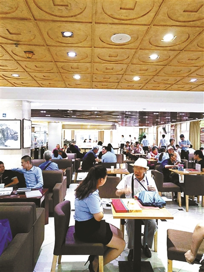 粗略統(tǒng)計,不少于百人在大廳活動,投資人和銷售員各占一半,每張圓桌旁都是一位老人,一位銷售。