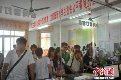 資料圖:2017年8月,學(xué)生和家長在廣西大化縣教育局資助辦申請助學(xué)貸款!『閳赠i 攝